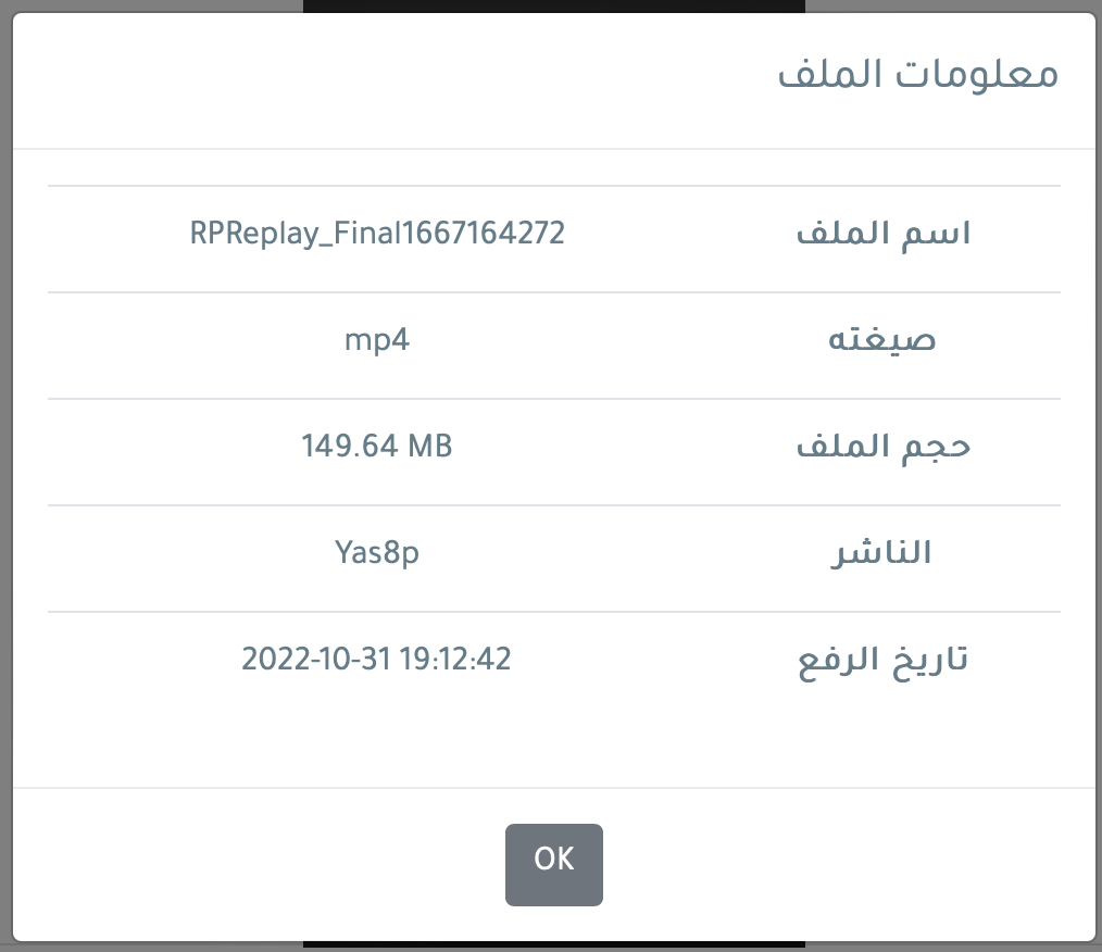 أي سيكون بإمكانك مشاركة مقاطع mp4 و سيستطيعون المشاهدة بشكل مباشر دون الحاجة لتحميله ثم مشاهدته ، كما يمكن قبل المشاهدة أو التحميل رؤية تاريخ الرفع ووقت الرفع و من الذي قام برفع الملف واخيرا يمكن رؤية اسم الملف الاصلي