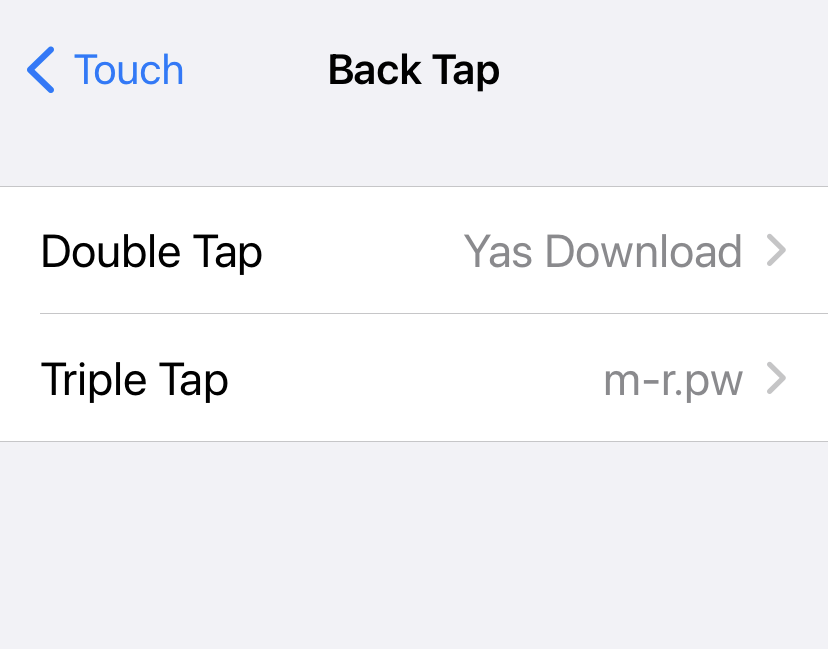 يمكنك أن تجعل الاختصار يعمل عن طريقة النقر من خلف الجهاز مرتين أو ثلاث مرات حسب الذي تريده ، يمكنك عمل ذلك عن طريق الذهاب للاعدادات ثم تسهيلات الاستخدام ثم اللمس ثم الضغط من الخلف ، قم بالبحث واختيار اختصار m-r.pw ، قمت بجعله أنا عند النقر خلف الجهاز ثلاث مرات يعمل اختصار m-r.pw .